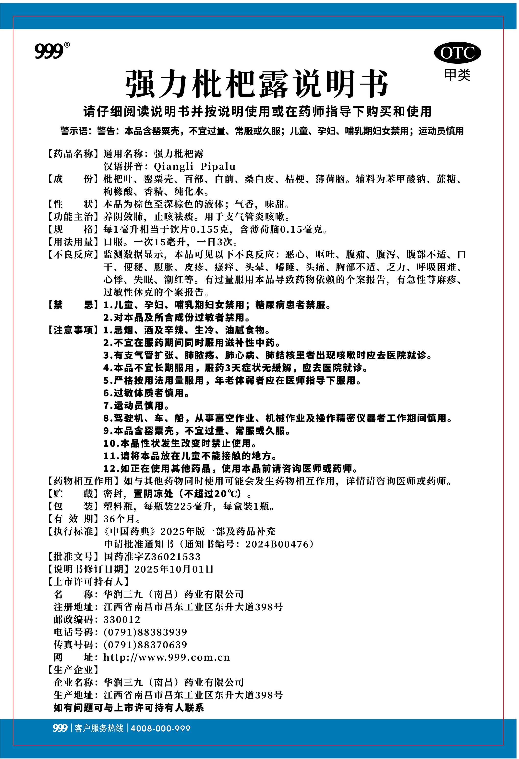 强力枇杷露-南昌三九(225毫升瓶装)