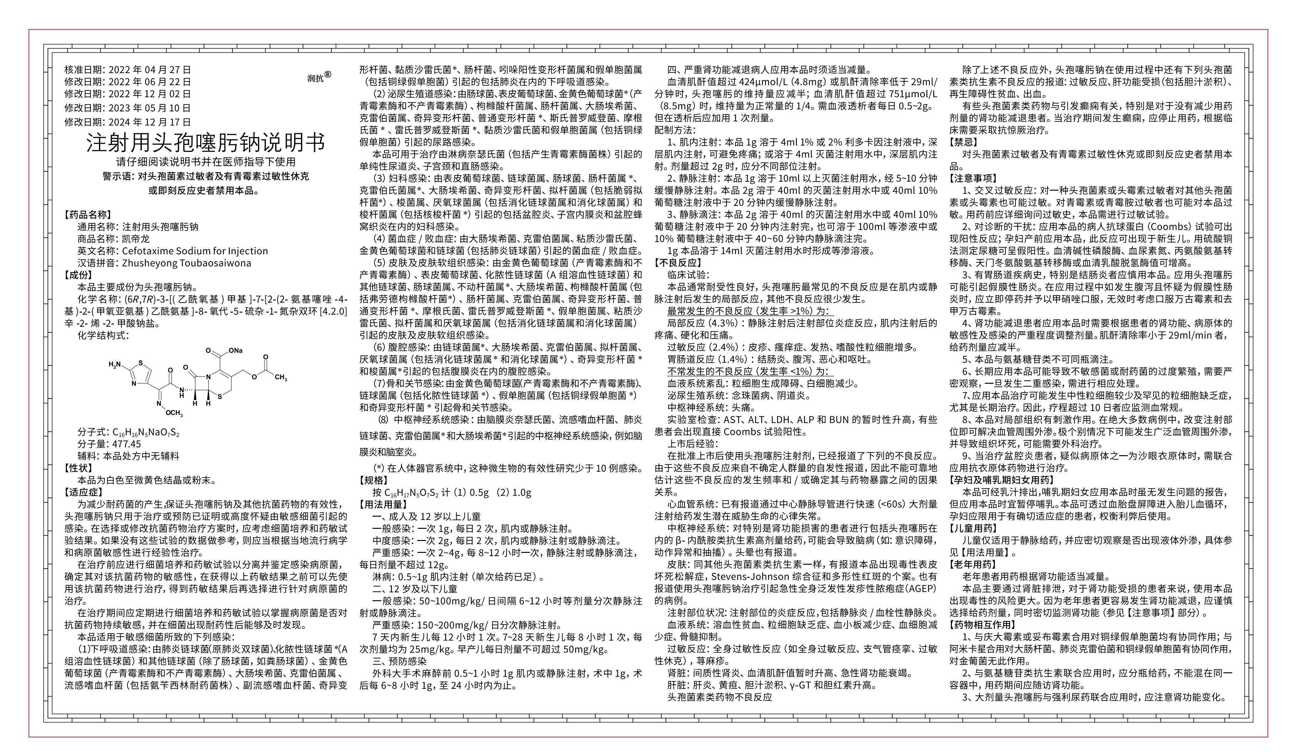 0301000167_8_05 注射用头孢噻肟钠说明书[013版]_02(2)