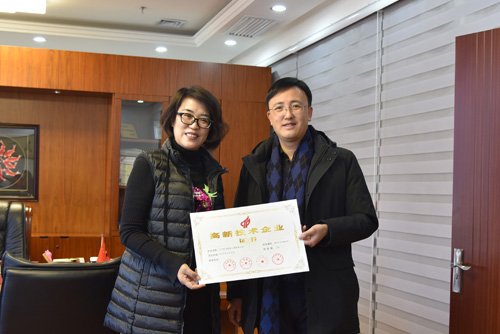 1月23日,辽宁省本溪市科技产权局副局长吕刚一行来到辽宁PA视讯官方网站本溪三药有限公司,向公司授予《高新技术企业证书(2017-2019)》。该证书由辽宁省科学技术厅、辽宁省财政厅、辽宁省国家税务局、辽宁省地方税务局联合颁发。