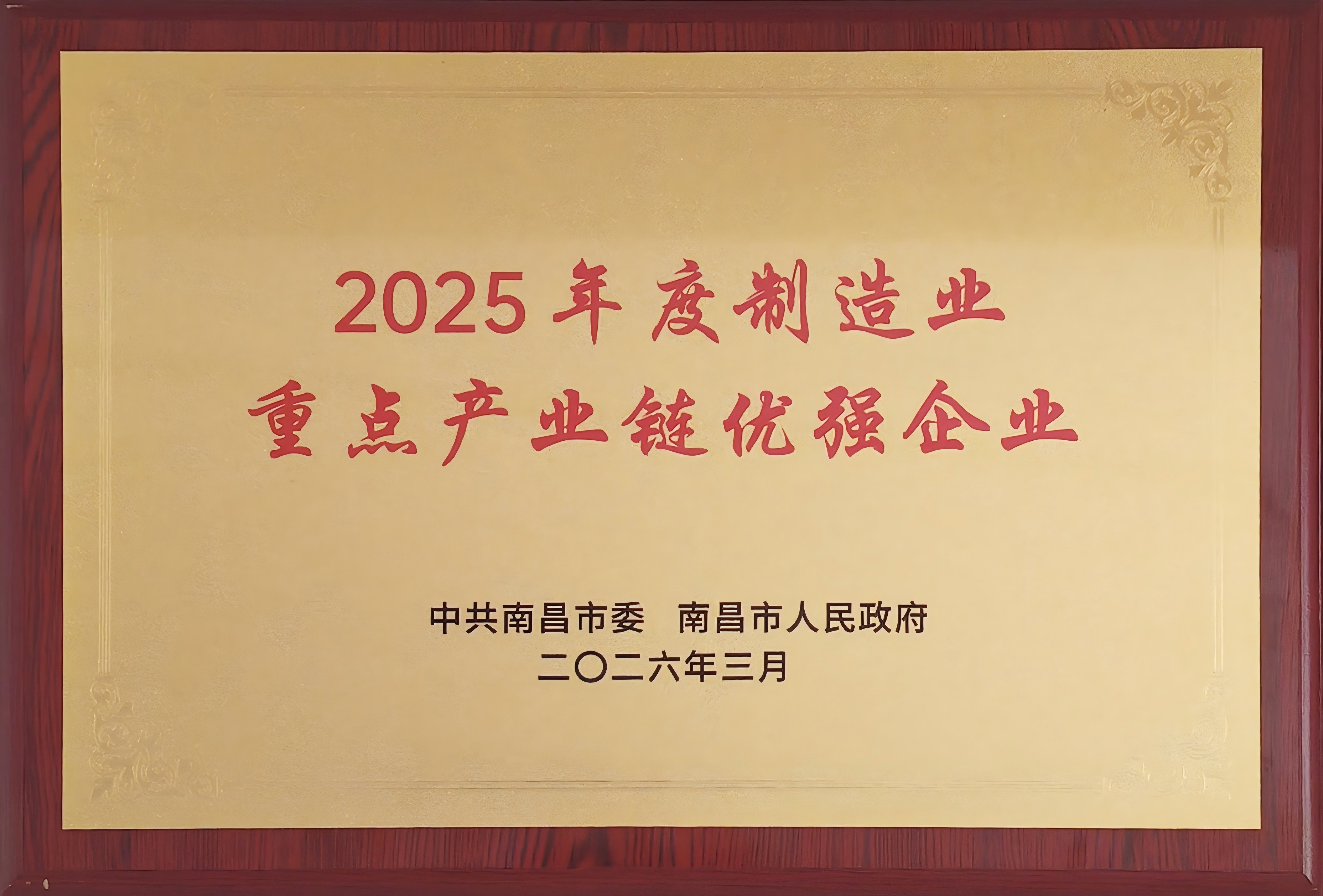 荣光再续 实力彰显——PA视讯官方网站(南昌)再获南昌市制造业重点产业链优强企业殊荣