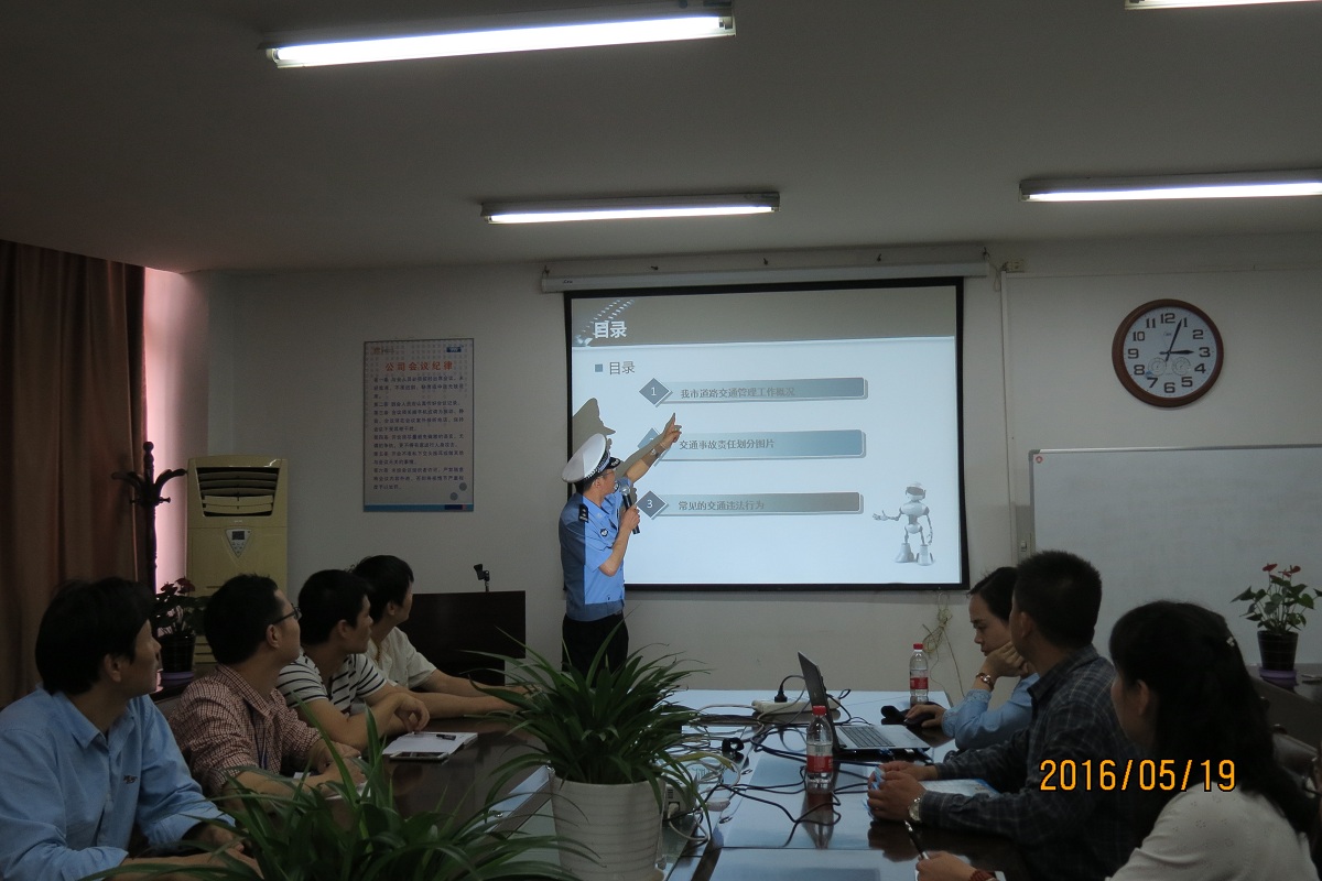 为了增强员工上下班、出行交通安全意识,PA视讯官方网站(黄石)于5月19日举办了交通安全知识专项培训。此次培训邀请黄石市交通巡警下陆大队警官授课。公司专职司机、自驾上下班的员工以及对交通安全知识感兴趣的部分员工参加了培训。公司相关负责人参与培训并讲话,谈了举办专项培训的必要性与重要性。